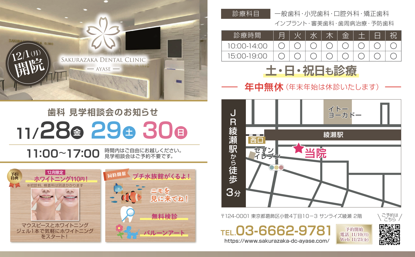年中無休で19時まで診療しておりますので、綾瀬にお住いの方に便利な歯医者です。綾瀬駅で歯医者をお探しならお気軽にご来院ください!